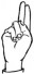 На ћирилици написано ШАЛЕ НИКОЛЕНЏИЋ састоји се из 14 слова [?]. Исписано ћириличном једноручном азбуком за глувонеме: